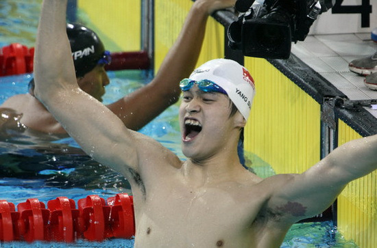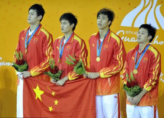 11月15日晚,在2010年广州亚运会暨第十六届亚运会游泳比赛男子4x200米自由泳接力赛中,张琳、蒋海琦、李昀琦、孙杨组成的中国队以7分07秒68夺冠。这是一个历史性的胜利——日本泳将56年的垄断就此终结。