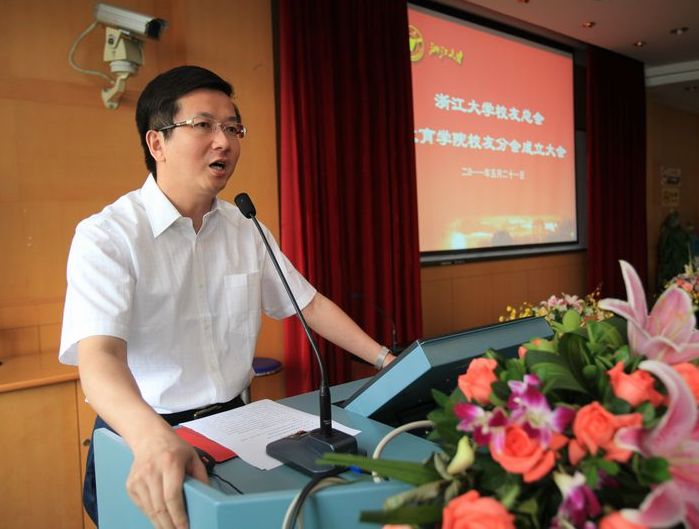 校党委副书记邹晓东教授首先代表学校祝贺教育学院校友分会成立,并热烈欢迎各位校友返校欢庆浙江大学114周年华诞。他强调,教育关系人类的进步,在80多年的办学历史中,教育学院为国家、民族培养了一大批杰出人才,广泛活跃在教育、体育和社会各个行业。教育学院校友分会的成立,对加强校友与学院、校友之间、校友与师生之间的联系交流,进一步组织动员广大校友为学院建设发展建言献策具有重要意义。浙江大学正处在贯彻实施《国家中长期教育发展纲要》,积极推进世界一流大学建设的关键时期,他在感谢教育学院校友们无论身处何地、位居何职均持之以恒关注母校发展的同时,希望广大校友、学长继续关心和大力支持我校办学,关心教育学院的发展。