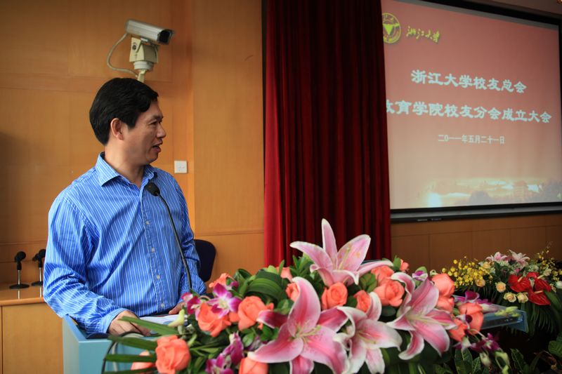 2011年5月21日上午9时整,浙江大学校友总会教育学院校友分会成立大会暨首届理事会在西溪校区田家炳书院520学术报告厅隆重举行。浙江省政协副主席徐辉校友、校党委副书记邹晓东、联合国国际学校创始人姚文琴校友、原浙江省教育委员会主任邵宗杰校友、原浙江省侨办主任杨招棣校友、原杭州大学体育学系主任郑志林校友、原中国美术学院党委书记毛雪非校友、原杭州师范大学校长林正范校友、浙江大学比利时校友会会长杨焕平校友,绍兴恒信投资有限公司总经理茹振刚校友等数十位来自海内外、社会各界的新老同学与在校师生齐聚一堂,同叙校友情谊,共话事业人生,回首大学美好时光,共贺浙江大学114周年华诞。会议由教育学院副院长刘正伟教授主持。
