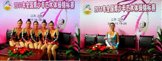 日,2011年全国青少年艺术体操锦标赛在江苏省江阴市举行。在教育学院体育学系单亚萍教练指导和带领下,我校艺术体操队参加了集体全能项目和个人全能项目的比赛。2009级、2011级运动训练本科专业丁一丹、王艺澄、金�佳、金�佳、金莹五人组成的团队荣获集体全能冠军,2009级运动训练本科专业梁雨婷则摘得青年A组个人全能冠军,队员们流畅的表演、高超的技艺征服了现场裁判和观众,赛场争一流,展现了求是学子的风采!