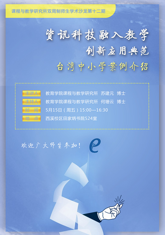 课程与教学研究所双周制师生学术沙龙第十一期:资讯科技融入教学创新应用典范-台湾中小学案例介绍