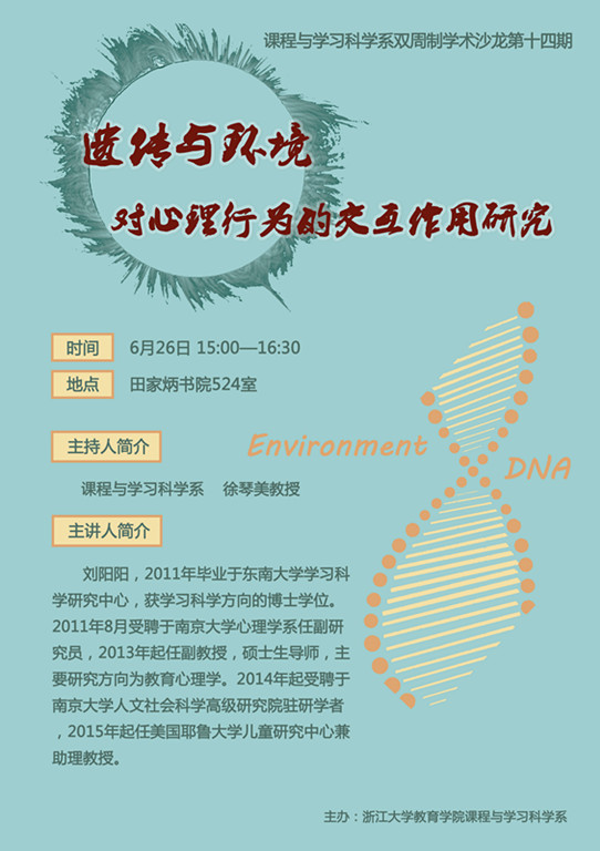 课程与学习科学系双周制师生学术沙龙第十四期:遗传与环境 对心理行为的交互作用研究