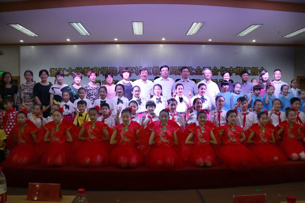 2015年6月29日,值教育学院与下城区教育局签署第二轮深化全面合作协议(2013-2016)两年之际,双方在杭州市京都小学隆重举行全面深化合作中期汇报会。下城区区政府有关领导、浙江大学教育学院领导、下城区教育局领导、合作项目负责人及相关科室人员、京都小学部分师生参加了本次汇报会。