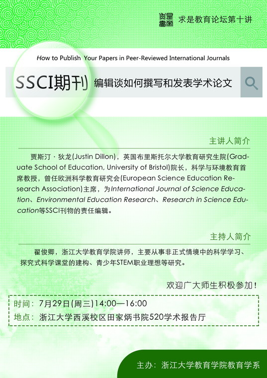 求是教育论坛第十讲――SSCI期刊编辑谈如何撰写和发表学术论文