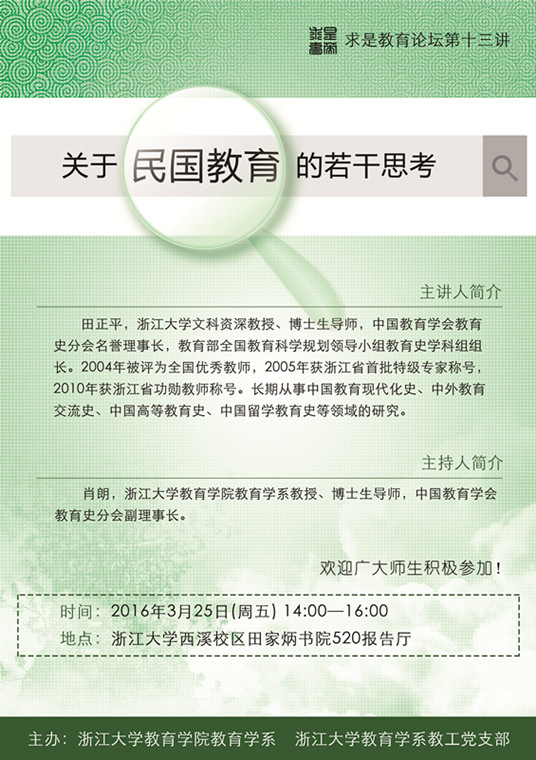 求是教育论坛第十三讲――关于民国教育的若干思考
