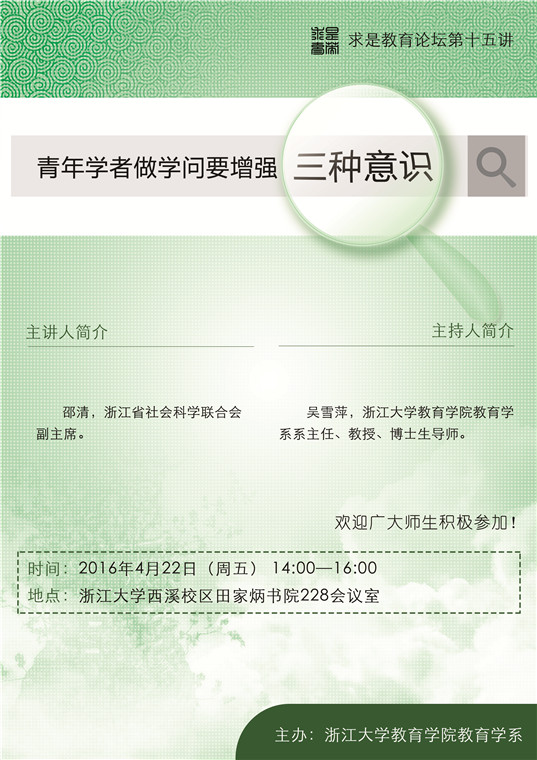 求是教育论坛第十五讲―青年学者做学问要加强三个意识