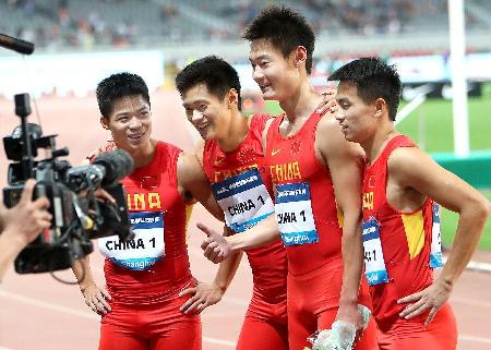 | 苏炳添、谢震业、张培萌和陈时伟(从左至右)(图片转引自新华网) |