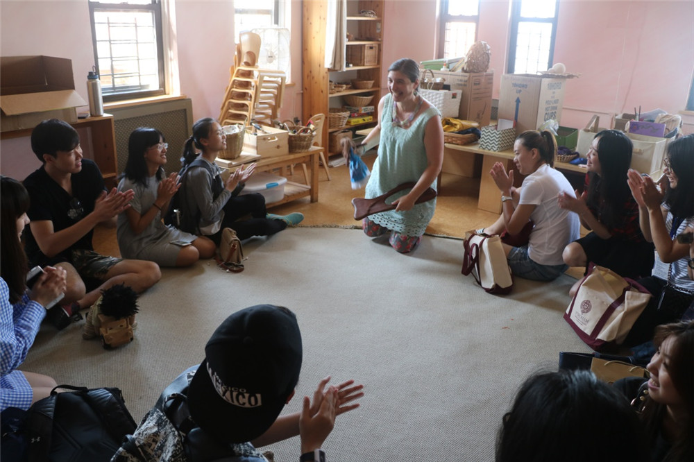 华德福学校(Waldorf School in Brooklyn)的教学模式也极具创新特色。该校Christina老师向同学们仔细介绍了学校“尊崇自然,从做中学,重视手工劳动和团队合作”的教学理念、以绘画为主的教学方式以及按年龄段循序渐进的教学内容等等,并演示了教学过程的具体开展,激发同学们对该教育模式的研究兴趣。