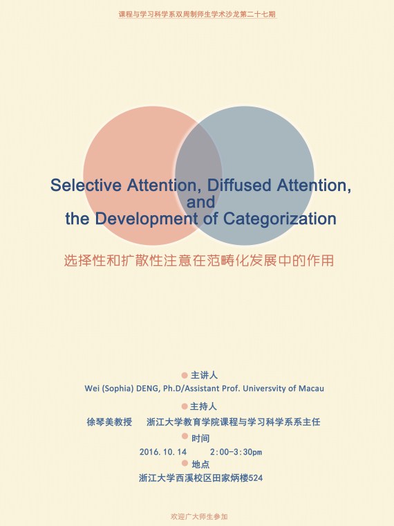 课程与学习科学系双周制师生学术沙龙第二十七期:选择性和扩散性注意在范畴化发展中的作用