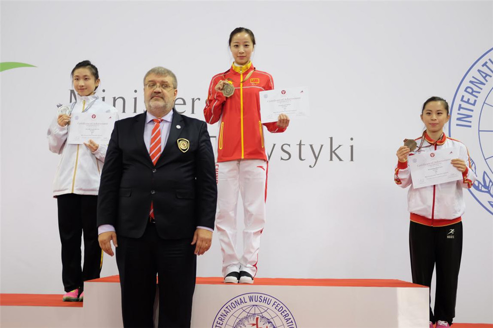 近日,第二届世界太极拳锦标赛在波兰普鲁斯科夫举行。浙江大学武术与民族传统体育专业2014级本科生戴丹丹代表中国参赛,夺得女子自选太极剑金牌。世界太极拳锦标赛是世界最高级别的太极拳单项赛事,由国际武术联合会主办,每两年一次。2016年度赛事吸引了来自中国、波兰、美国、法国、意大利等31个国家和地区的武术代表队共310名选手参加。中国队此次共派出8名队员参赛,分别参加男、女组自选太极拳、太极剑,男、女第三套国际武联规定太极剑,女子第三套国际武联规定太极拳,以及男子四十二式太极剑等项目。