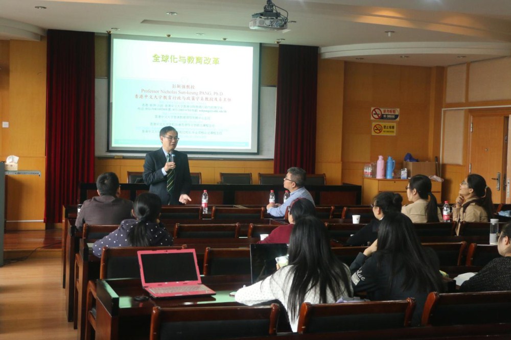 10月28日下午,香港中文大学教育行政与政策学系主任彭新强教授于田家炳书院520报告厅做“全球化与教育变革”学术讲座,教育领导与政策研究所常务副所长汪辉和部分师生参加了此次讲座。