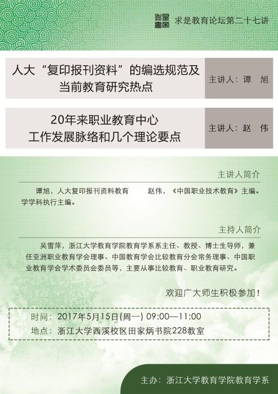 求是教育论坛第二十七讲――人大“复印报刊资料”的编选规范及当前教育研究热点&20年来职业教育中心工作发展脉络和几个理论要点