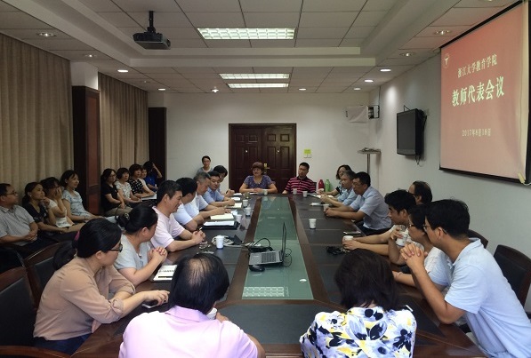 8月18日上午,教育学院召开教师代表会议,学校党委宣布关于教育学院党政班子换届干部任免的决定。校党委副书记胡旭阳,组织部副部长徐国斌,教育学院新老班子成员以及教师代表共30余人到会。会议由教育学院党委书记兼副院长吴巨慧主持。
