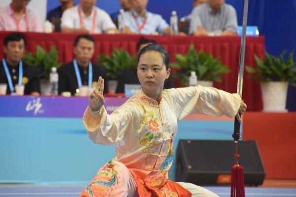 2016级武术与民族传统体育专业本科生胡钰莹比赛瞬间