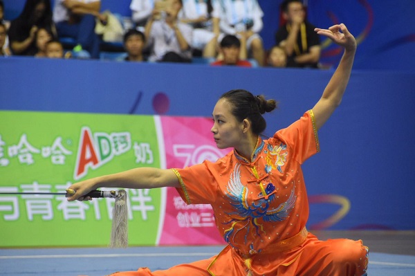 2014级武术与民族传统体育专业本科生宋佳星比赛瞬间