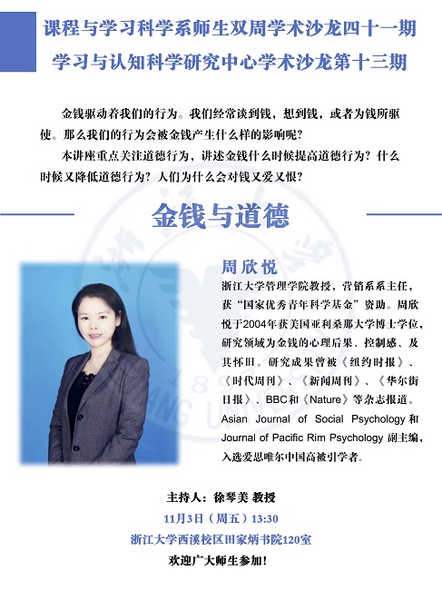 课程与学习科学系师生学术沙龙四十一期、学习与认知科学研究中心学术沙龙第十三期