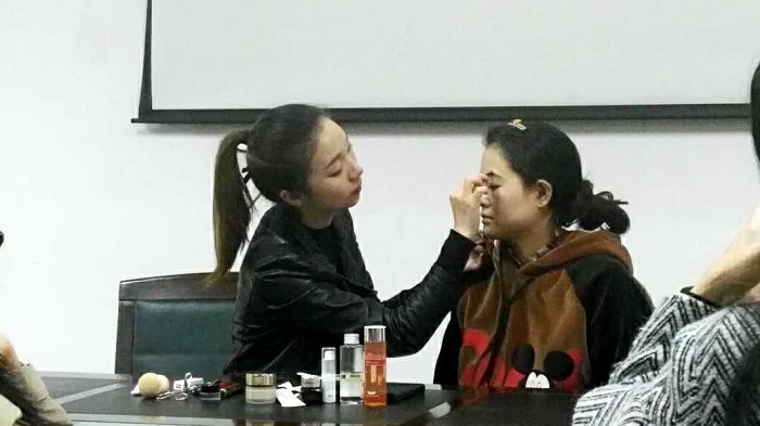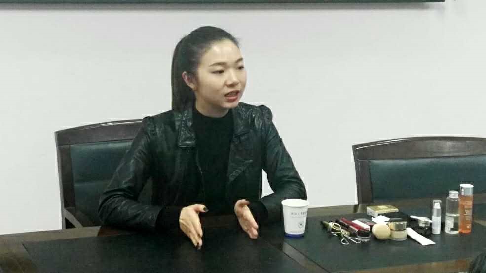 第二部分是职场妆容。在底妆方面,建议使用比自己肤色白半个色号的粉底液即可,并注意与发际线、肩颈部之间的过渡。重点在于修眉与眼妆上。梁老师以现场一位女同学为例,根据她偏圆的脸型,将其过弯过粗的眉毛调整为“流星眉”,有层次地画上大地色眼影,并适当拉长了眼线。在这之后,梁老师从颜色对比的角度,向我们讲解了不同肤色适用的腮红与口红的色号。同时梁老师提醒,高光和阴影并不适用于日常妆容。梁老师也提出,不同品牌各有其主打产品,我们可以灵活挑选。