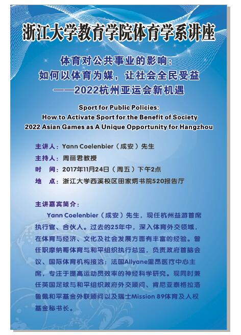 体育学系学术讲座:体育对公共事业的影响:如何以体育为媒,让社会全民受益――2022杭州亚运会新机遇
