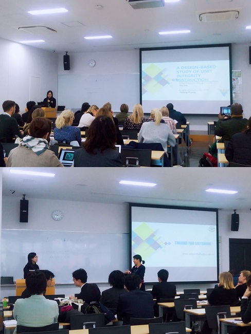 浙江大学教育学院刘徽老师、林楠老师应邀参加了会议,并分别作了《基于设计研究的单元整体教学》、《基于课例研究的新任体育教师反思能力发展的研究》的报告。刘徽老师在报告中介绍了开展单元整体教学的背景、基于设计的研究概念、中国学校的实践研究等内容。受浙江大学社科院、曾宪梓国际交流基金资助,林楠老师在“体育教育课例研究发展——日本、中国与苏格兰的案例研究”专题论坛中介绍了杭州市两所小学的新任体育教师在两轮课例研究中反思水平和反思内容的变化,探讨了课例研究应用于体育教师职后培训的实践效果。与会代表认为,中国课例研究的实践成效显著,为其他国家相关领域的研究提供了借鉴。课程与教学论硕士研究生杨佳欣同学的海报《如何使课程整合更有效——基于<礼物包装>的课例研究》在会议中也进行了展示,并获得了专家的充分肯定。会议期间,教育学院师生还参观了名古屋星城中学、冈崎市立豆坂小学、东浦町立卯里小学,与教师和学校管理人员围绕共同关心的话题开展了交流。