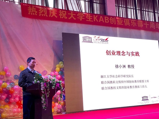 徐小洲教授在大学生KAB创业俱乐部十周年庆典大会作报告