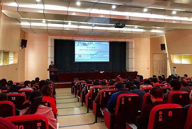 22日上午,徐小洲教授为该校中层以上干部和教职工作《理念与策略:面向2035的中国高等教育国际化》主旨报告。报告阐述了我国高等教育国际化的表现形态、问题与策略。徐教授首先分析了高等教育国际化的内涵,他认为,高等教育是多层次、多类型的综合体系,不同高校要在把握国际化共性的基础上,探索适合校情的国际化理念、目标、模式。其次,徐教授提出,国际化是双刃剑,并分析了发达国家与发展中国家在国际化进程中面临的难题与挑战。最后,他指出,面向2035,我国高校要前瞻设计,整体推进高等教育国际化,探索具有中国特色,与大国地位相称的教育国际化道路。讲座结束后,徐教授回答了“西部高职院校应制定何种发展策略”、“思想政治教育体系建设”和“如何量化学校的国际化水平”等问题,引起与会者积极反响。