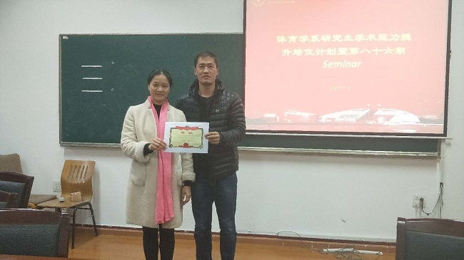 2018年1月4日下午,体育学系研究生学术能力提升培优计划第86期SEMINAR暨2018年第1期在西二教学楼222会议室举行。体育学系邱亚君副教授应邀担任点评嘉宾,2016级体育教育训练学博士研究生田海波担任主持人,共有13名师生参加了本次活动。