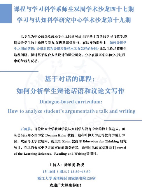 课程与学习科学系师生双周学术沙龙四十七期暨学习与认知科学研究中心学术沙龙第十九期