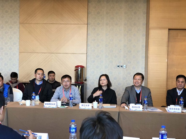 之后,周丽君教授应邀在地方体育局长、体育产业研究基地和企业代表的座谈会上发言,并就政产学研合作提出了建议,引起与会代表的共鸣。在国家体育产业研究基地座谈会上,周丽君教授就浙江大学教育学院体育学系的人才培养和跨学科合作研究进行了介绍,尤其对目前正在进行和未来即将着手的体育产业重点研究领域,向国家体育总局经济司及体育器材装备中心领导进行了汇报,并与15家其他研究基地同行进行了深入沟通和交流。教育学院体育学系在运动休闲产业、智能体育产业及竞赛表演产业等方面的研究引起了国家体育总局及其他基地同行们的兴趣,他们也表达了今后与浙江大学体育产业研究基地合作的意向。