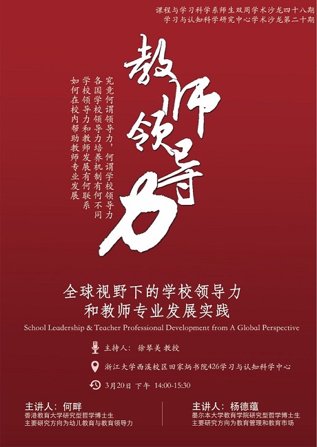 课程与学习科学系师生双周学术沙龙四十八期暨学习与认知科学研究中心学术沙龙第二十期:全球视野下的学校领导力和教师专业发展实践