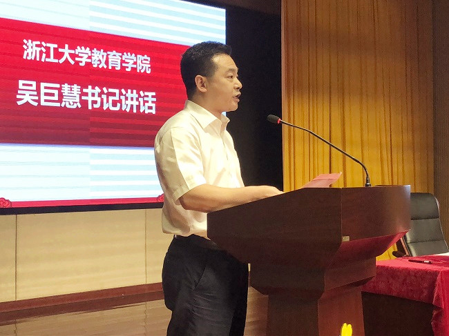 吴巨慧代表教育学院对开发区管委会、区教育局和社会各界同仁表示感谢,并指出此次合作签约,开启了开发区管委会、浙江大学教育学院、萧山区教育局合作的新篇章,开拓了萧山区教育局与浙江大学教育学院合作的新阵地,开创了萧山信息港小学与浙江大学教育学院专家团队合作的新模式。吴巨慧表示,教育学院将着力于提升教师水平、变革课堂教学、提炼教研成果、拓展学校品牌,促进实验学校内涵式、高质量发展,为实现萧山区基础教育现代化不懈努力。