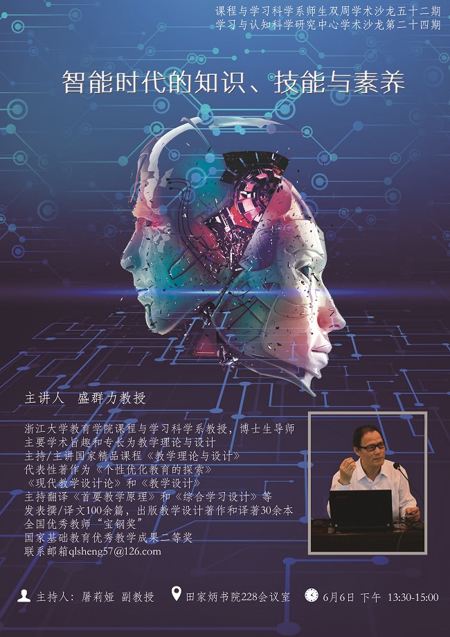 课程与学习科学系师生双周学术沙龙五十二期暨学习与认知科学研究中心学术沙龙第二十四期:智能时代的知识、技能与素养