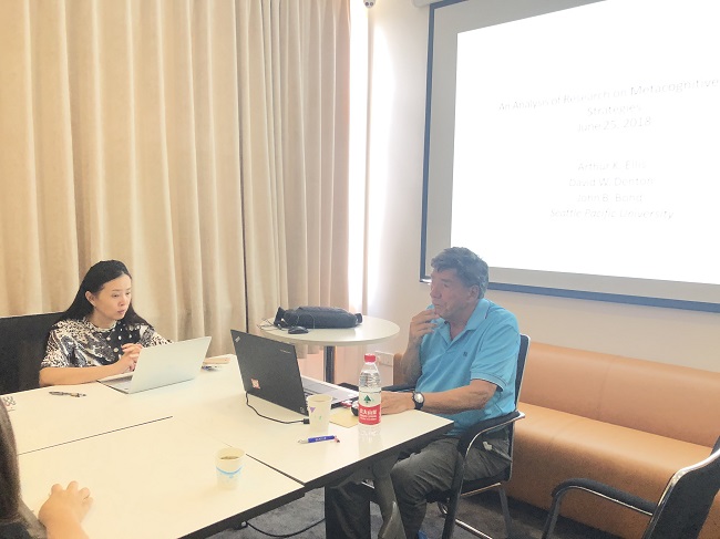 6月25日下午,课程与学习科学系师生双周学术沙龙五十四期暨学习与认知科学研究中心学术沙龙第二十六期在田家炳书院426学习与认知科学中心顺利举行。美国西雅图太平洋大学国际课程研究中心主任、课程研究专家Arthur K. Ellis教授应邀作题为“元认知教学策略研究分析”的学术报告。沙龙由浙江大学教育学院课程与学习科学系张文军副教授主持,学院各系所师生共同参与。