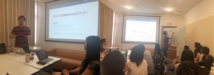 沙龙第一阶段,由余竹琳博士带领大家探究“学生交互数据能告诉我们什么?”这一问题。余竹琳博士首先让在座师生思考2个问题:如何验证the law of practice?给定一套试题,请问它所包含的知识点有哪些?随后余竹琳博士阐释了交互数据的来源、常见的分析模型及其应用,并通过经典论文,介绍了聚类方法(clustering)在学生MOOC行为模式分类中的应用、如何运用机器学习技术探索学生的情感状态、如何使用学习曲线分析优化智能教学系统等三个案例。最后,余竹琳博士围绕“存在完美的教学系统?能否用‘实验’找到完美的教学系统?”这一问题,基于Bergner的预测模型和理论模型,指出“正确的”模型不意味着是“有用的”,反之亦然。在讨论环节中,在座师生就学生交互数据问题进行了讨论,余博士一一作答,现场气氛非常活跃。