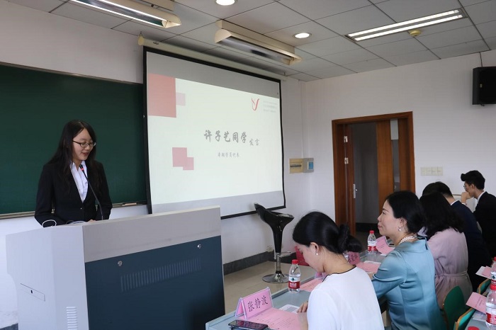 第三项是本期学员代表许子艺同学发言。许子艺同学从自身的角度出发,讲出她作为一名即将步入社会的硕士研究生对礼仪培训班的期待。礼仪不仅是人际关系的润滑剂,更能达到内强素质、外塑形象的良好效果。在这里,她最大的期待就是可以将培训内容融入到自己的为人处世之中,转化为自身独特的气质,可以在今后的一言一行中践行礼仪之美。