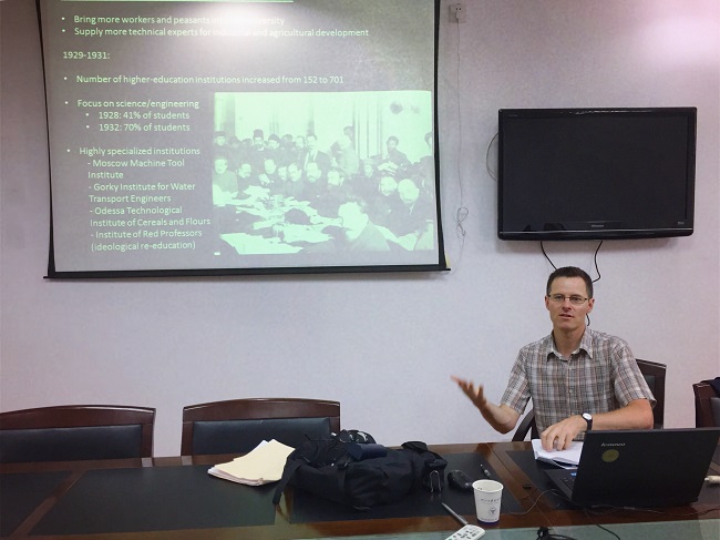 7月13日上午,美国威斯康星大学麦迪逊校区教育政策研究与历史系的Adam Nelson教授应邀为教育学系师生作题为“二战后东欧大学发展”的主题报告。讲座由教育学系副主任梅伟惠副教授主持,学院20余位师生参加了此次讲座。