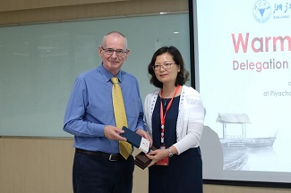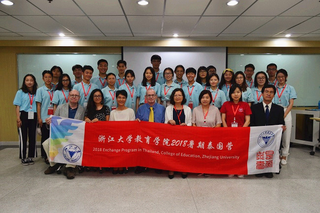 8月7日下午,教育学院访泰师生一行来到了泰国国立法政大学。泰国国立法政大学始创于1933年,是泰国最古老的大学之一,被誉为“总理”的摇篮,其教学宗旨是为泰国全社会提供接受高等教育的机会。法政大学公共健康系的Mare Van Der Putten等三位教授对来访师生表示热烈欢迎,并介绍法政大学在教学、科研、学生生活方面的基本情况。随后,陈炯晟同学代表访问团向泰方介绍了浙江大学和教育学院的相关情况。