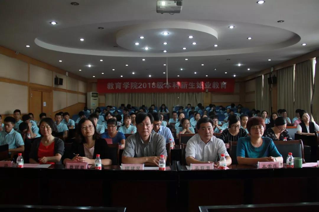 在雄壮的国歌声中,大会正式开始。首先,教育学院院长顾建民老师代表教育学院的全体师生向新生们致以欢迎和问候。在发言中,他回顾了教育学院一百二十一年来的悠久而辉煌的历史,且展望未来,阐明了教育在当代乃至未来发展的无限可能。此外,顾院长还向新生提出了三点期望:一是追逐梦想,有梦想才会有方向,有方向才会有未来;二是要身体力行,而行动的第一要务就是转变,尤其是学习方式的转变;三是要保持定力,抵抗诱惑,迎难而上,把握自己,不负青春。