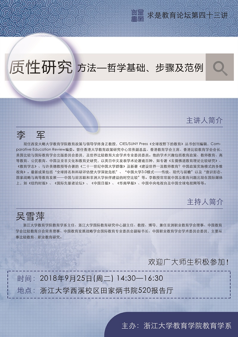 教育学系求是教育论坛第四十三讲:质性研究方法――哲学基础、步骤及范例