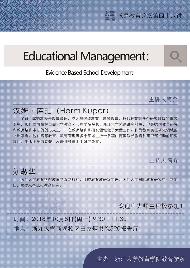 教育学系求是教育论坛第四十六讲:Educational Management: Evidence Based School Development