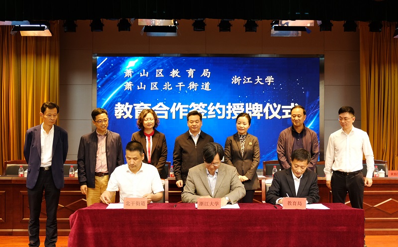 10月10日,浙江大学教育学院与萧山区教育局、萧山区北干街道在萧山金惠初中举行浙江大学教育学院实验学校(萧山金惠初中)签约、授牌仪式。教育学院院长顾建民、党委书记吴巨慧、副院长周丽君、专家组负责人孙元涛副教授,萧山区政府、萧山区教育局、萧山区北干街道、萧山城区教育管理中心领导,以及萧山区学校校长代表、家长代表、相关部门负责人共100余人参加签约、授牌仪式。仪式由萧山城区教育管理中心书记倪柏根主持。