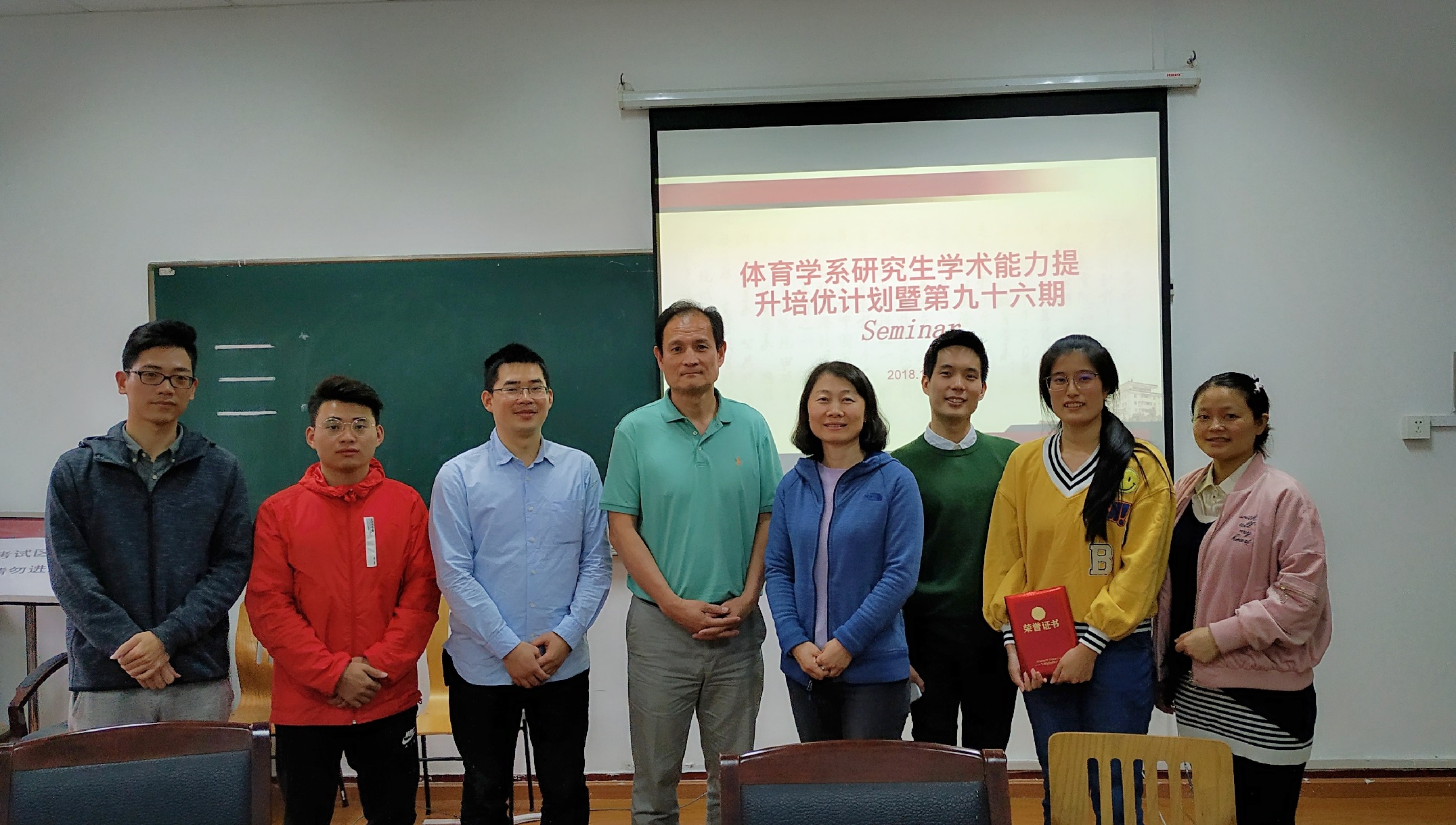 报告期间,李甫中老师、司琦老师和同学们进行了积极、深入的讨论交流,现场学术气氛围热烈。最后经现场投票,2017级体育系博士研究生金秋艳同学获得本期SEMINAR “最佳报告人”称号。