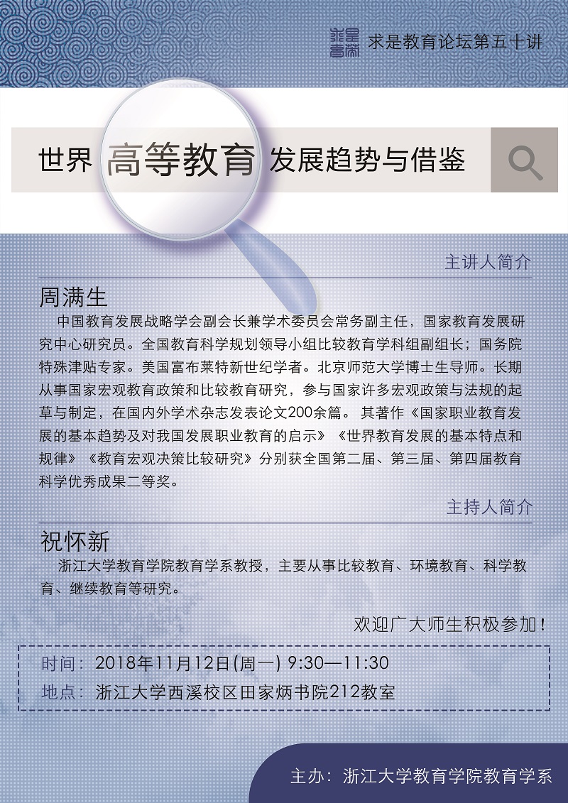 教育学系求是教育论坛第五十讲:世界高等教育发展趋势与借鉴