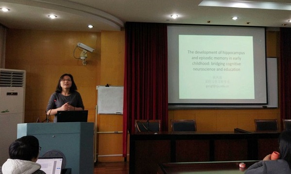 耿凤基博士以“海马与情景记忆在儿童早期的发展”为主题进行学术报告。她从大脑与教育之间的关系出发,阐明了认知神经科学的发展对于教育的重要作用。通过解答4个有关海马的研究问题,耿凤基博士解释了海马的定义及其组成部分,以及它们与4-8岁儿童各种记忆能力的相关性。最后,耿凤基博士基于自己的实验案例和视频案列,生动形象地阐释了情景记忆与学习结果之间的关系。