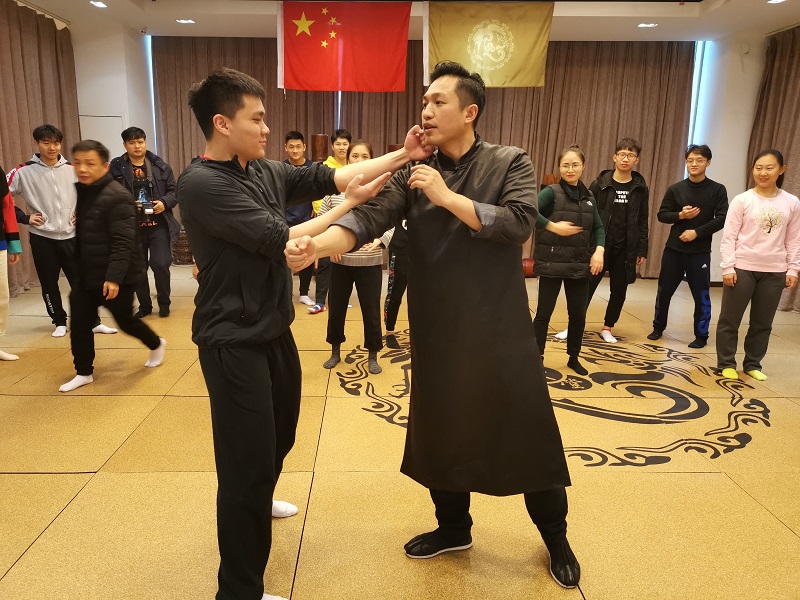 在钟义老师的引导下,师生们参观了堂前和堂内,感受义咏堂的浓厚文化氛围和武术的规矩、礼节。随后,钟义老师为师生讲解了咏春拳的基础拳术――小念头的基本要领和动作要求,并与同学们进行切磋。在互动中,同学们体会到了咏春的实战攻防性,以迅雷不及掩耳之势屈人之兵,而非取人性命;同时也感受到咏春拳强身健体,养身修身的益处,在赞叹咏春文化博大精深的同时从心底里萌生了同为武术人的自豪感。最后,钟义老师与师生们分享了他的武术人生,并就武术理念、武术传播经历等与师生展开讨论。