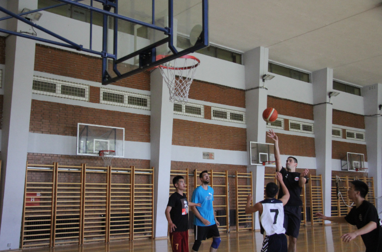 17日下午,交流营学生和诺维萨德大学球员在篮球馆进行混合组队篮球比赛。哨响之后,两队球员迅速进入比赛状态,赛场气氛激烈活跃。双方在球场上展现了快速的奔跑、敏捷的攻防、有力的弹跳和精准的灌篮,为师生们呈现了一场精彩万分的篮球赛。