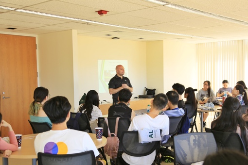 交流营一行抵达UMH后,受到了马诺阿分校教育学院和研究生院师生的热烈欢迎和热情接待。项目负责人Danis为交流营同学介绍了日程安排,并带领大家参观了UMH校园。