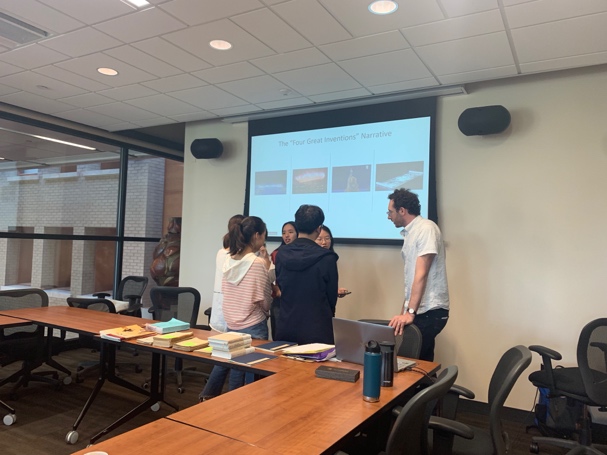 在题为“四大发明与全球史中的现代中国”的讲座中,教育史专业的博士生Galen Poor以中西比较的视角讨论了“四大发明”一词的诞生、时人观点以及在民国历史教课书中的情况,更带来了珍贵的旧版教科书与各位同学交流和讨论。