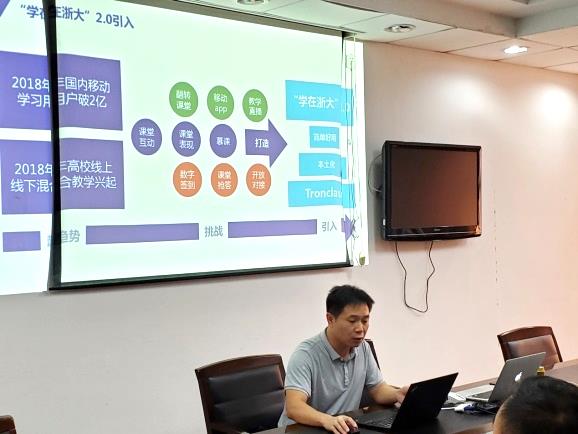 杨玉辉工程师首先对“学在浙大2.0”在线课程平台进行系统介绍,阐述了在顺应全球在线教育趋势、面临多种挑战的背景下,“学在浙大”学习系统的发展现状。同时,杨玉辉工程师将学习支持、课程分析等功能与传统MOOC三者进行对比,分析了“学在浙大2.0”线上教学系统简洁、智能、高效的新特点和优势。