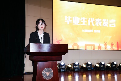 接着,教师代表单亚萍老师与毕业生代表甄丹蕾发言,为即将毕业的同学们留下殷殷嘱托,送上真诚的祝福。