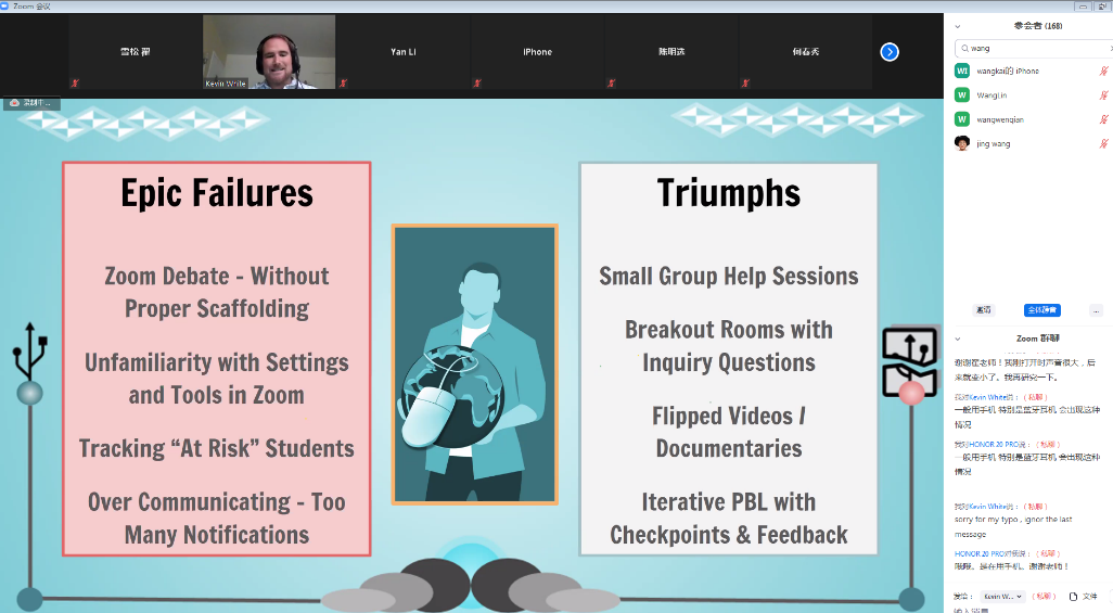 会议旨在与世界各国教育专家探讨在线教育创新模式,分享疫情下在线教学的有效途径和方法,共同担当特殊情境下的社会责任。本次国际云会议设国内、国外2个专场,来自全球7个国家和地区的25位专家学者参会并做报告,各地听会者400余人次,教育学院特聘研究员翟雪松博士主持会议。